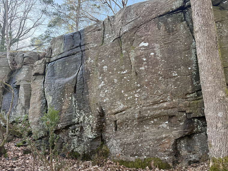 Avoid the arete to the left and good holds to the right.