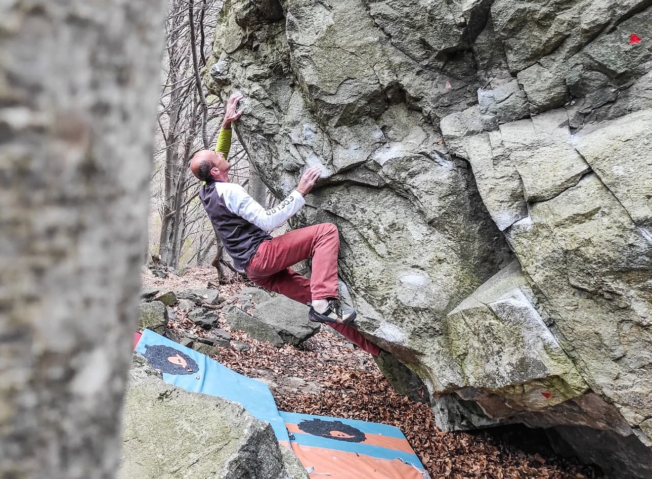Giovanni Carletto climbing on Il Cubetto boulder
