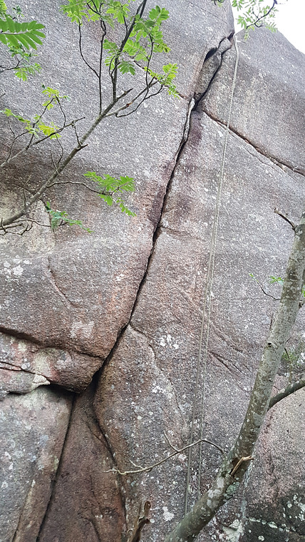 Startar på klipppartient till vänster om stigen upp till Utsikten höger. Fina hand och fingerjam.