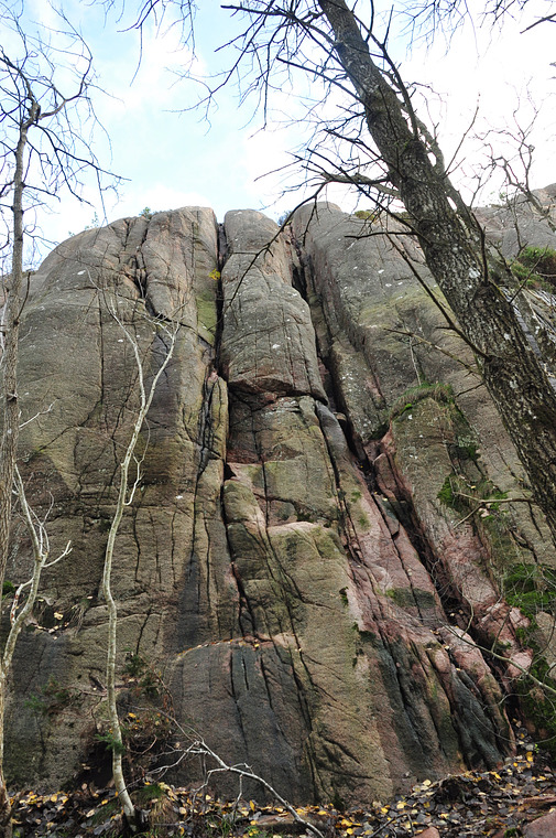 Rakt upp till den bredare inskärningen och följ denna till toppen